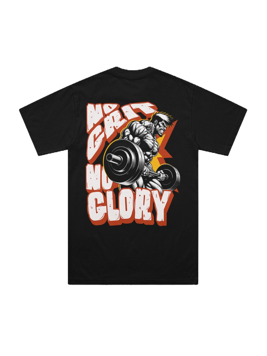Unleash your inner beast with Stylnova’s "No Grit No Glory" oversized gym t-shirt. Designed for those who train hard and hustle harder, this black statement tee features a bold graphic of a fierce bodybuilder and a powerful slogan that speaks volumes. Made with breathable, stretch-friendly cotton fabric, it’s perfect for intense workouts or casual streetwear. Whether you're lifting at the gym or conquering your daily goals, this oversized fit gives you the comfort and confidence to go all in.