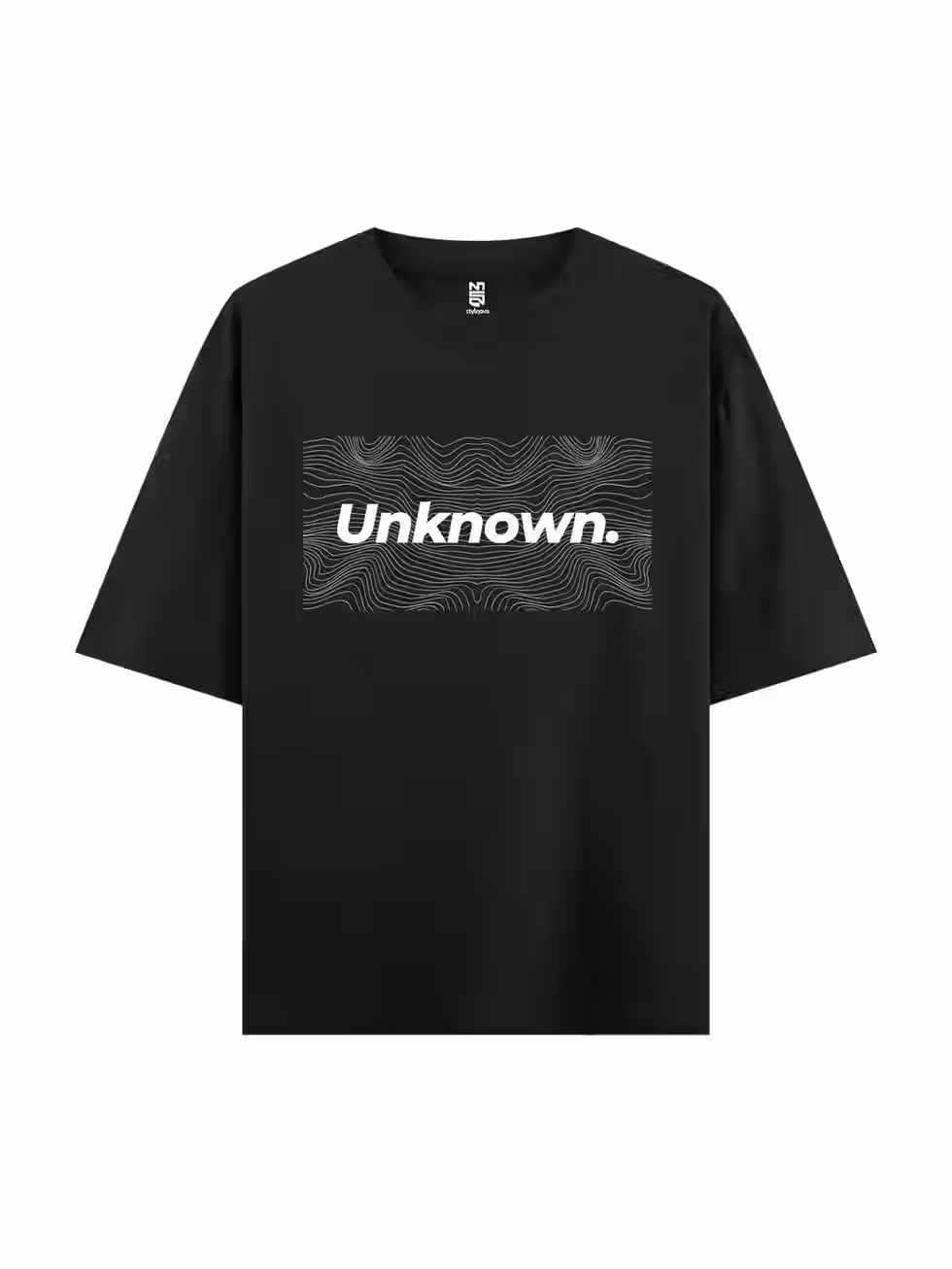 The Unknown Oversized Black T-Shirt is crafted for those who express more by saying less. Designed in premium 240 GSM cotton, this black tee features a centered “Unknown.” graphic layered over topographic-inspired waves. The drop-shoulder structure and relaxed fit offer unmatched comfort and contemporary style — ideal for streetwear lovers and minimalists alike.